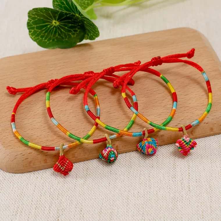 (1)编制五彩绳:由青、红、白、黑、黄无色丝线搓成,可以辟邪消灾;