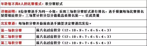 积分赛抽签决定出发赛道; 四、赛事分组