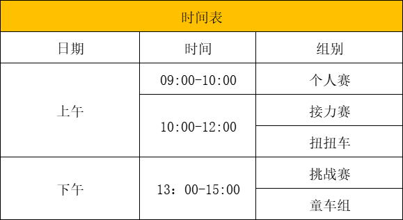 【童车赛规则】各年龄组报名不足3人合并到相邻组别;12人以内(含10人)采取积分制(两轮积分,若相同积分以第二次积分进行排名),open组5-7岁混合组;