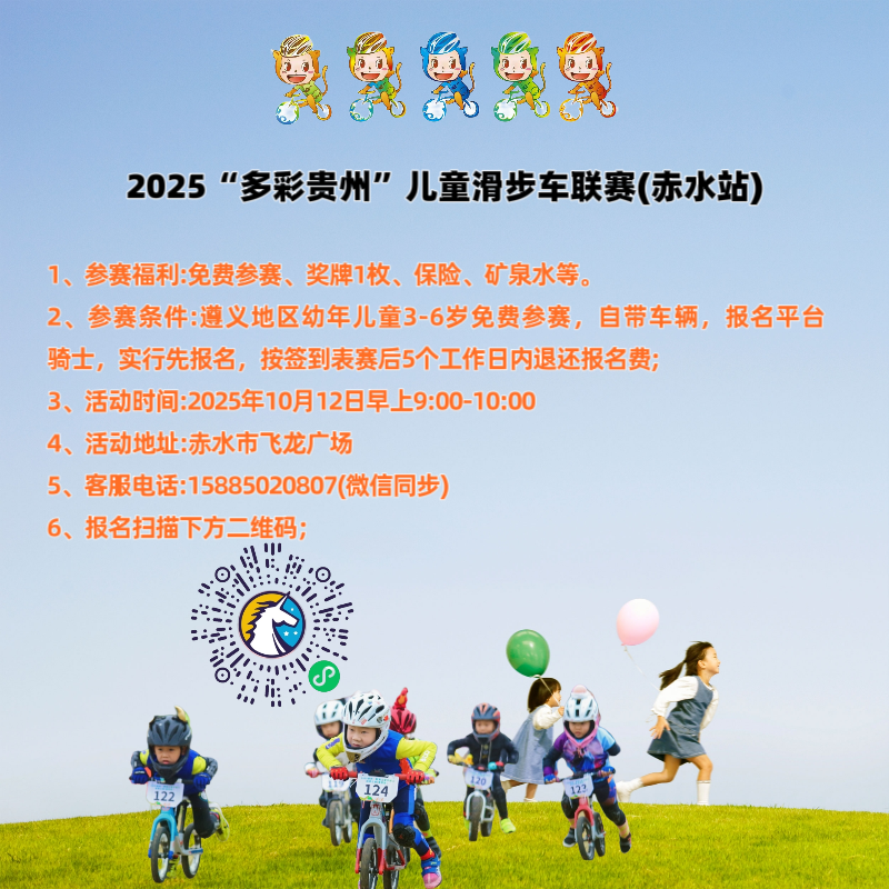 2、参赛条件:遵义地区幼年儿童2-7岁免费参赛,自带车辆,报名平台童骑士,实行先报名,按签到表赛后5个工作日内退还报名费;