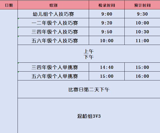 比赛年龄:3-15岁
