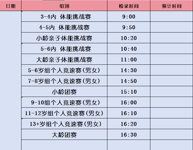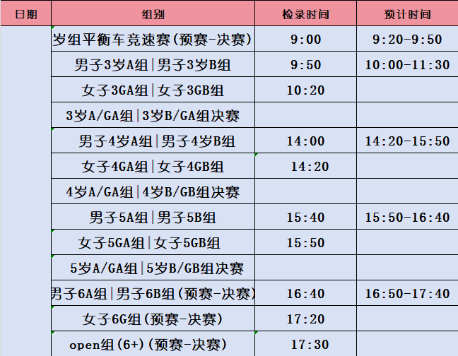 赛事时间表