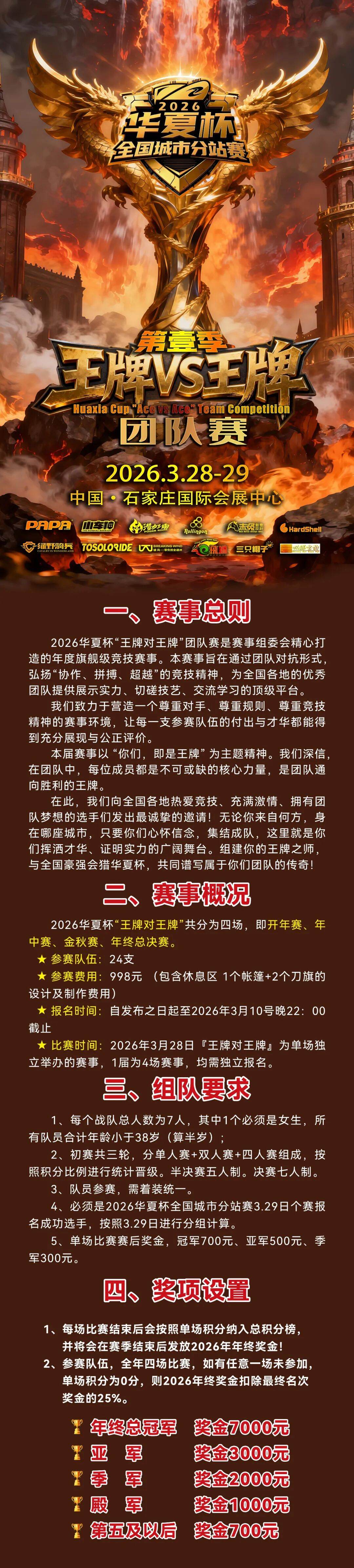 • 本次团队赛以2026年3.29日为核算日期:即『開年大赛』个赛报名成功的选手为准!!!否则视为无效!!