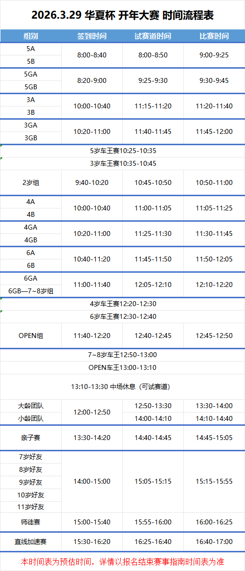 【赛事分组】:3岁组、4岁组、5岁组、6岁组、7-8岁组 OPEN组车王赛