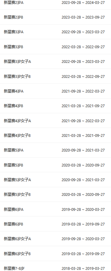 • 赛事组别分别设置为7岁、8岁、9岁、10岁、11岁、12岁
