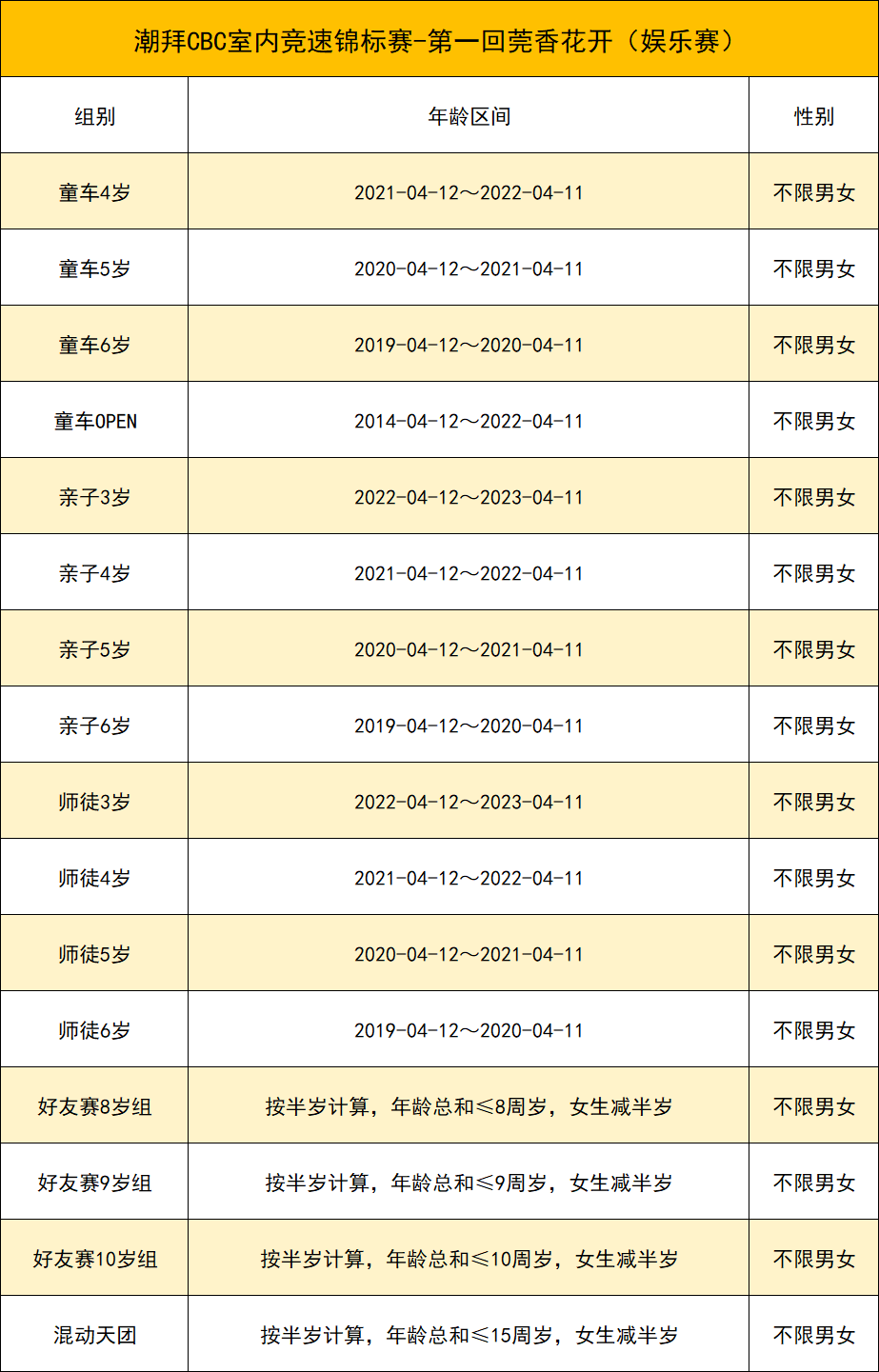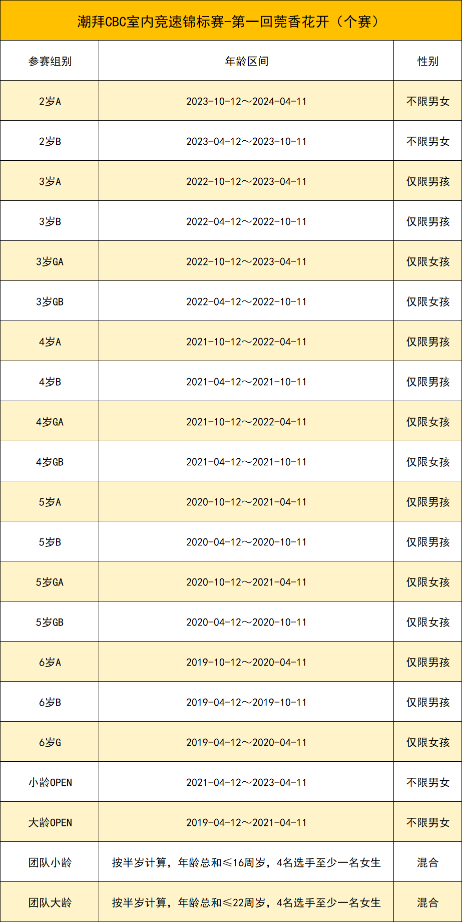 3、赛事包内容请现场打开核实,若有缺少,可请现场工作人员补发,不接受赛后赛事包替换或补发噢!赛事包内若涉及到尺码选择,请家长根据选手自身情况进行选择,现场以及赛后不予更换,请须知。