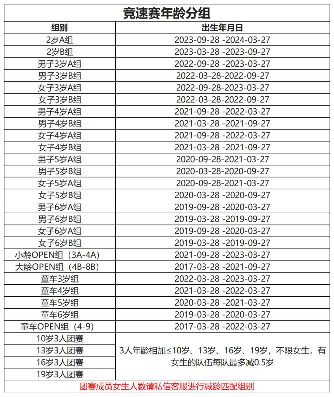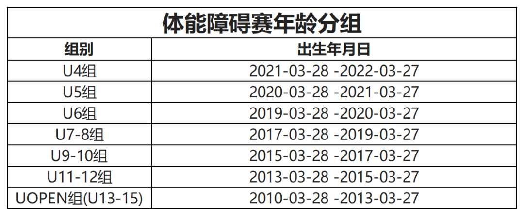 ●家长须根据选手出生年月日对应表格信息进行报名;