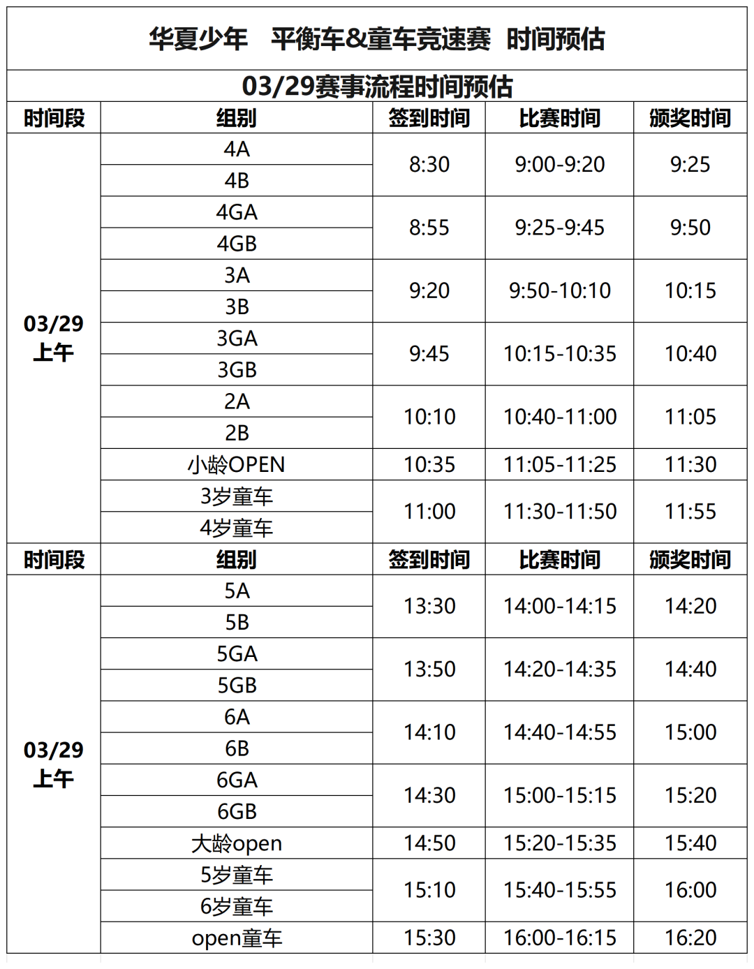 现场比赛时间会视实际情况发生变动,可能会存在赛事延时情况,各位家长安排行程时需前后预留2个小时时间,请勿卡点,请知悉!