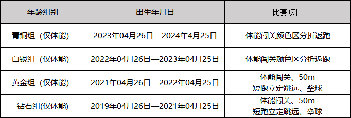 ●体能赛共设置4个组别;