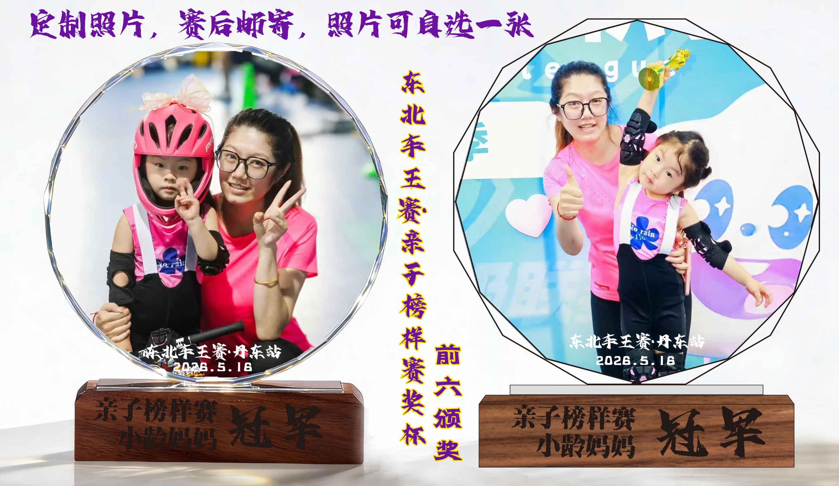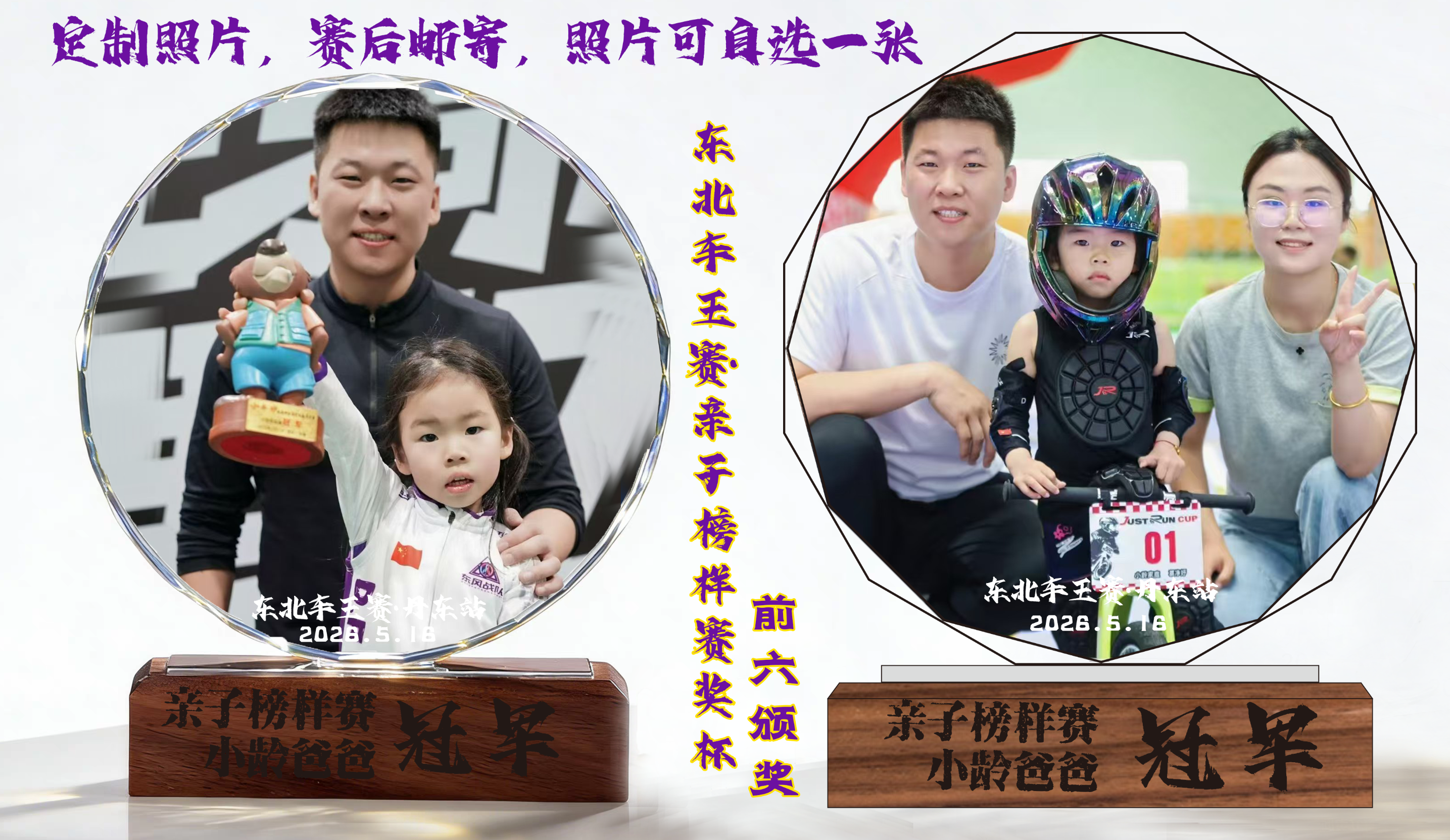 亲子接力特色奖杯:赛后定制合影奖杯邮寄到家!