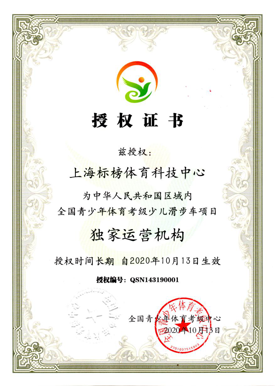 考级资质、考官资质均受国家认可,由上海标榜体育科技中心授权。